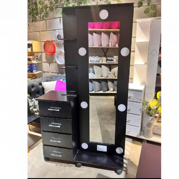Dale un toque de elegancia y funcionalidad a tu espacio con este tocador moderno, diseñado para quienes buscan comodidad y estilo. Su espejo de cuerpo completo con iluminación LED integrada brinda una excelente visibilidad para maquillaje, peinados o rutina facial.
