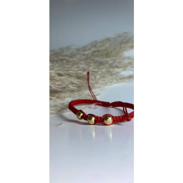 MANILLA HILO ROJO CON ESFERAS EN ORO