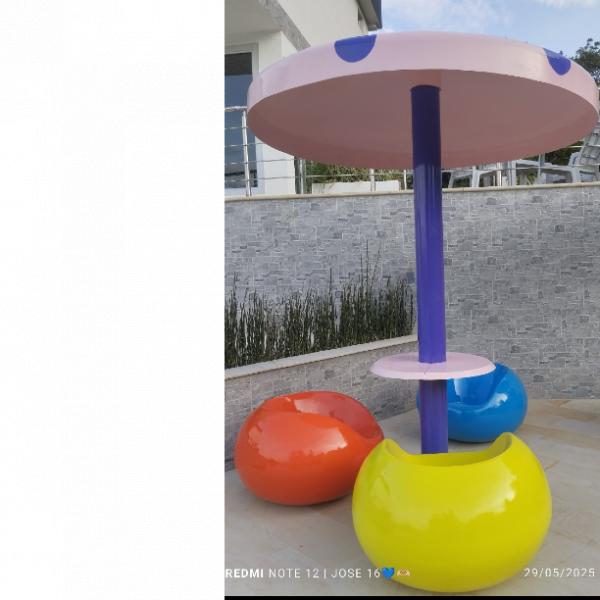Hongos coloridos fabricados en fibra de vidrio en los tamaños deseados por el cliente