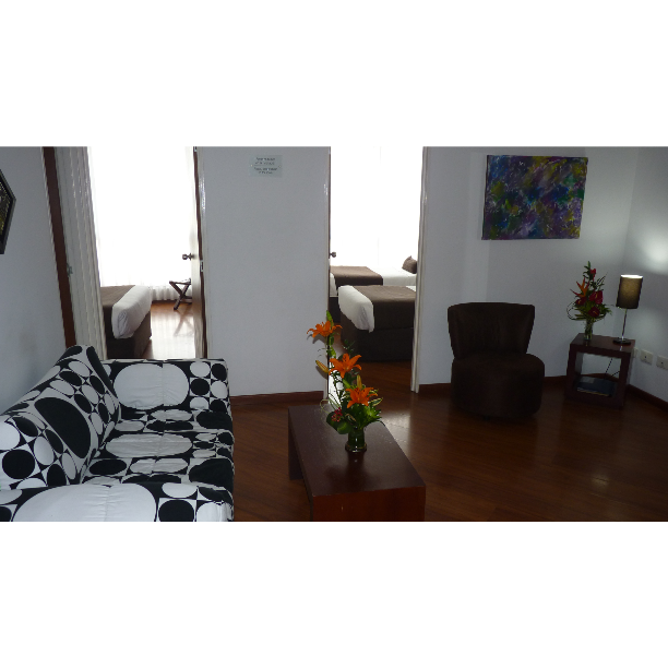 El Aparta Suite consta de 2 Alcobas una con cama Doble y otra con dos camas twin, sala de estar y cocineta, Minibar, maletero, televisores LCD con señal por cable, cajilla de seguridad, secador de cabello, teléfono, conexión inalámbrica a Internet (WI-FI), Cerraduras electrónicas por proximidad