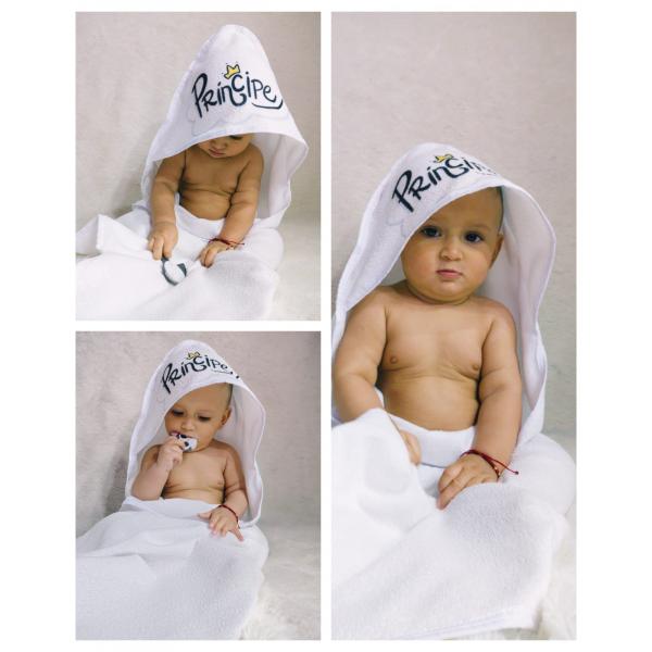 Una toalla de baño supersuave y absorbente diseñada para envolver a tu pequeño con ternura después del baño. La capucha bordada le da un toque real y divertido. Esta toalla es personalizable para que tu bebé tenga un estilo único y especial, perfecto para cualquier ocasión. ¡Hará que la hora del baño sea aún más especial! 💧
