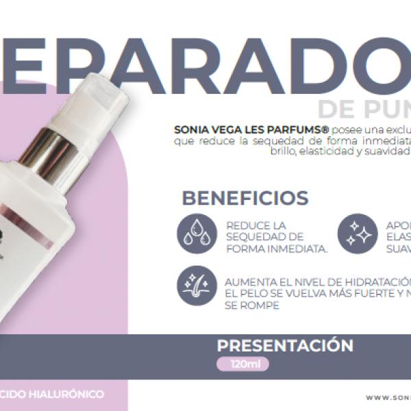 Devuélvele la vida a tu cabello con el Reparador de Puntas Sonia Vega Les Parfums®, una fórmula exclusiva que reduce la sequedad al instante, aportando un brillo radiante, elasticidad y suavidad irresistible. Su acción hidratante fortalece las fibras capilares para que tu cabello luzca más sano, fuerte y libre de quiebre desde la primera aplicación. Ideal para mantener un acabado sedoso y lleno de vitalidad.