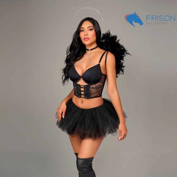 El ángel más lindo del inframundo a llegado a nuestra tierra para deleitar con su encanto. *Usa el bralett de tu disfraz como prenda exterior. Podrás verte hermosa en halloween y casual es resto del año.