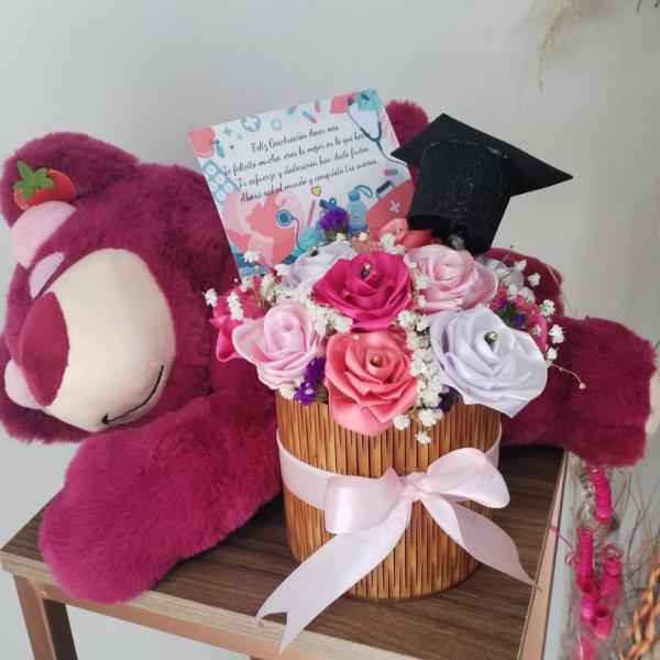 🎓🌹 Celebra los logros con un detalle único 🌹🎓 Un arreglo lleno de amor y ternura para decir ¡Feliz Graduación! de la forma más especial ✨💖