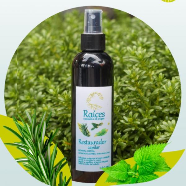 Fórmula herbal concentrada en formato spray que actúa directamente en la raíz para estimular el crecimiento y fortalecer cada hebra capilar. Está elaborado con una poderosa sinergia de plantas medicinales (como romero, ortiga y hoja de guayaba) y aceites esenciales, siendo un tónico que nutre profundamente el cuero cabelludo.