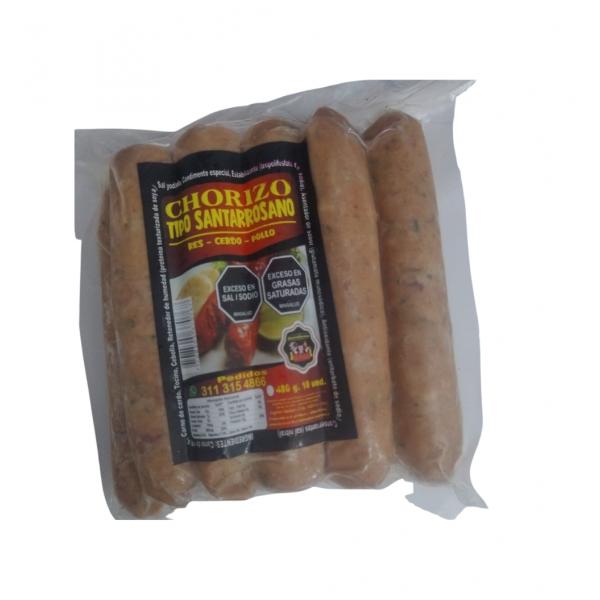 Chorizo Tipo Santarrosano, elaborado con una mezcla balanceada de res, cerdo y pollo que garantiza un gusto casero y lleno de aroma. La presentación grande de 10 unidades es ideal para familias, asaderos o negocios que buscan calidad y cantidad en un solo empaque.