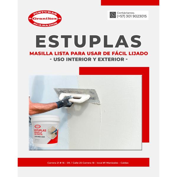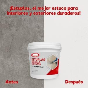 Consigue acabados perfectos sin complicaciones. ESTUPLAS es la masilla lista para usar con un fácil lijado, perfecta para alisar muros. Disponible en pasta para uso interior y exterior, te garantiza un trabajo limpio y de alta calidad. El precio depende de las necesidades del cliente.