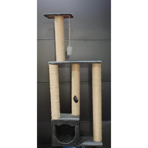 El refugio ideal para tu gato. Esta torre modular combina un escondite seguro en la base (con silueta de gato), plataformas para descansar y postes cubiertos con cuerda de yute natural para un rascado intenso. Incluye juguete colgante. ¡Personaliza el tamaño y el precio se ajusta a tus necesidades!