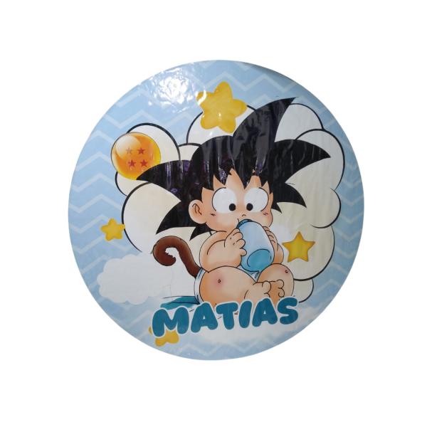El cartel perfecto para dar la bienvenida a tu bebé. Afiche redondo de Goku bebé con el nombre del festejado. Uso ideal para Baby Shower o primer cumpleaños. ☁️ Cambiamos el diseño y el nombre sin problema. Precio flexible según el material y las dimensiones.
