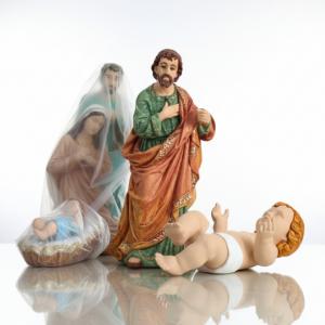 Hermoso pesebre grande de bizcocho, pintado con exquisito detalle. Incluye a la Virgen, San José, el Niño Jesús y animales. La pieza central de tu Navidad.