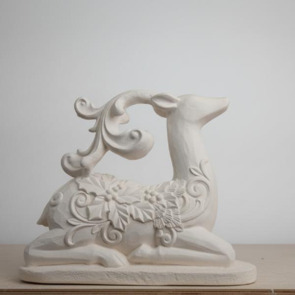 Esta elegante figura de ciervo con detalles navideños es tu lienzo en blanco. Ideal para pintar y crear una decoración única estas fiestas. ¡Dale tu propio estilo!