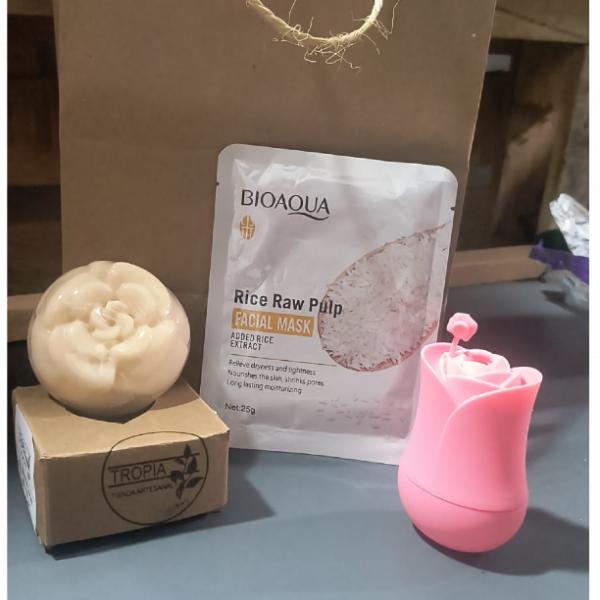 Incluye el jabón artesanal de tu preferencia, acompañado de una mascarilla natural y una hielera refrescante. Ideal para consentir tu piel con un ritual de limpieza, frescura y bienestar 100% artesanal.