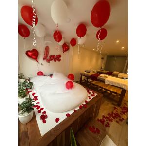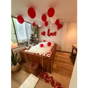 Cóctel de bienvenida, masaje cuerpo completo, chocolaterapia, aromaterapia, musicoterapia, piedras volcánicas, exfoliación, velo de colágeno, esferas frías en rostro, hidromasaje y cromoterapia en jacuzzi. SIN DECORACIÓN: $280.000. CON DECORACIÓN: $300.000