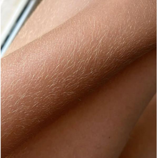 Tratamiento estético corporal que incluye decoloración del vello, exfoliación e hidratación para una piel suave y luminosa.