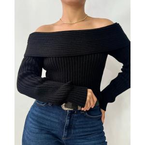 Elegante buzo tejido con un escote que revela los hombros, ofreciendo un look sensual y muy femenino. Su textura acanalada y color neutro lo hacen extremadamente versátil para combinar con jeans o faldas. Ideal para un estilo moderno y sofisticado. Disponible en varios tonos.