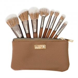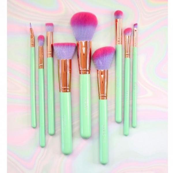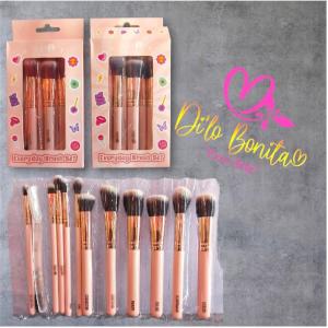 Set de brochas de la marca Lula, que cuenta con 9 unidades, 3 brochas dirigidas a usos del rostro y 6 brochas para usos en los ojos, suaves, con cerdas finas y con el tamaño estándar para llevar en tu cosmetiquera.