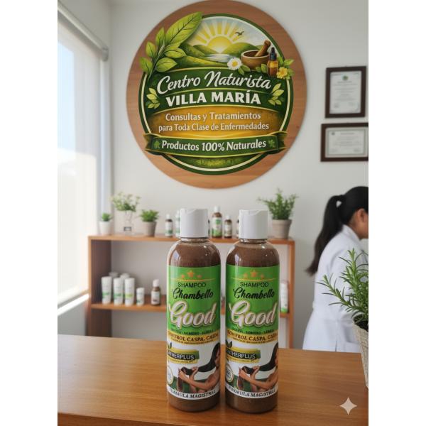 ¡Recupera la fuerza de tu cabello con el poder de la naturaleza! 🌿 Nuestro Shampoo Chambello Good es la solución definitiva contra la caspa, la caída y la alopecia. Gracias a su fórmula magistral con extractos botánicos, limpia profundamente el cuero cabelludo, elimina la descamación y estimula el folículo piloso para un crecimiento sano y vigoroso. No más químicos agresivos; solo resultados reales respaldados por nuestra experiencia médica.