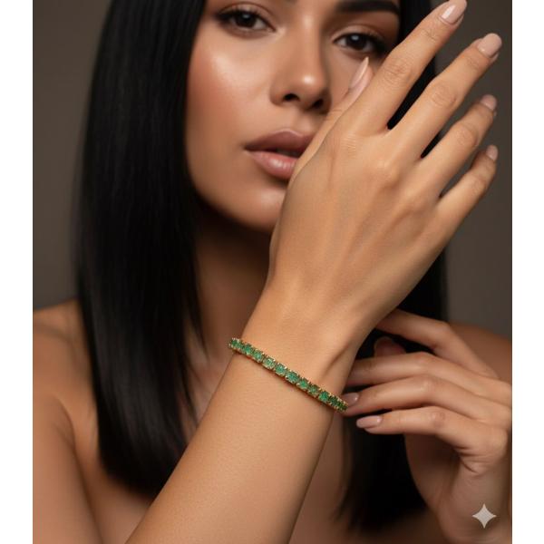 Pulsera tennis hecha en covergold (baño en oro) y esmeraldas en bruto. Fabricada artesanalmente. Unisex