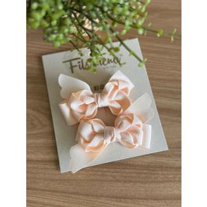 Moños elaborados en cinta tipo faya, con acabado firme y elegante. Disponibles en diferentes colores para combinar con cualquier outfit. Su diseño de doble lazo aporta volumen y un estilo delicado. Vienen en par e incluyen pinza pico de loro que garantiza una sujeción segura y cómoda durante todo el día.