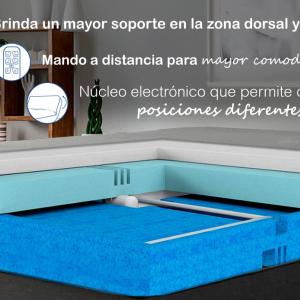¡Lo que debes saber del colchón! Personalización del descanso: Gracias a su núcleo eléctrico, ajusta fácilmente 6 posiciones para un descanso cómodo y adaptable a diferentes necesidades. Alivio de presión y soporte: La combinación de capas de alta densidad y espuma viscoelástica garantiza un soporte firme mientras alivia la presión en áreas clave del cuerpo, reduciendo dolores y molestias. Durabilidad y confort duradero: La calidad de los materiales asegura un colchón resistente y duradero.