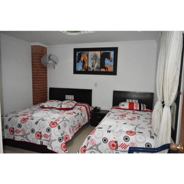 Habitación con dos camas 1 doble y 1 sencilla. Para 2 personas 64.000 x noche todas nuestra habitaciones incluyen baño privado con agua caliente, tv, wi-fi y algunas cuenta con netflix o directv