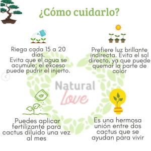 Una unión perfecta entre dos cactus La parte de arriba, con su color vibrante, no puede vivir sola porque no produce clorofila Por eso se injerta sobre otro cactus verde que le brinda los nutrientes que necesita Es un ejemplo perfecto de cómo dos seres diferentes pueden crecer mejor juntos Ideal para darle un toque alegre y exótico a tu espacio