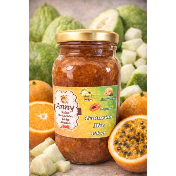 Conserva artesanal que reúne la riqueza de tres frutas en una sola preparación: la suavidad de la cidra, el toque exótico del maracuyá y la dulzura natural de la papaya. Elaborada a base de panela y mediante cocción lenta, logra una mezcla equilibrada de sabores y texturas. Es una receta que rescata la tradición casera, ofreciendo una experiencia única que representa la diversidad y el patrimonio gastronómico de las zonas cafeteras.