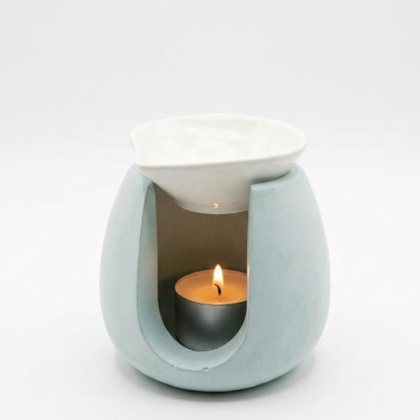 Pebetero grande y curvo, 100% hecho a mano en cemento, material mega durable y resistente. Colores a elegir, quemador superior en aluminio o cerámica, color a elegir.