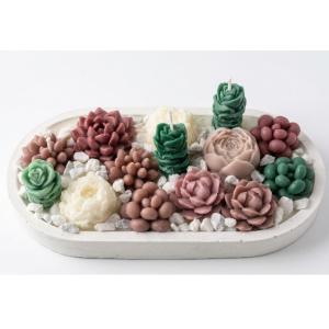 Set que Incluye 2 velas decorativas hechas 100% Cera de soya aromatizadas + un florero 100% hecho a mano en cemento+ una base pequeña plana o de bolitas. Colores y aromas a elegir por el cliente.