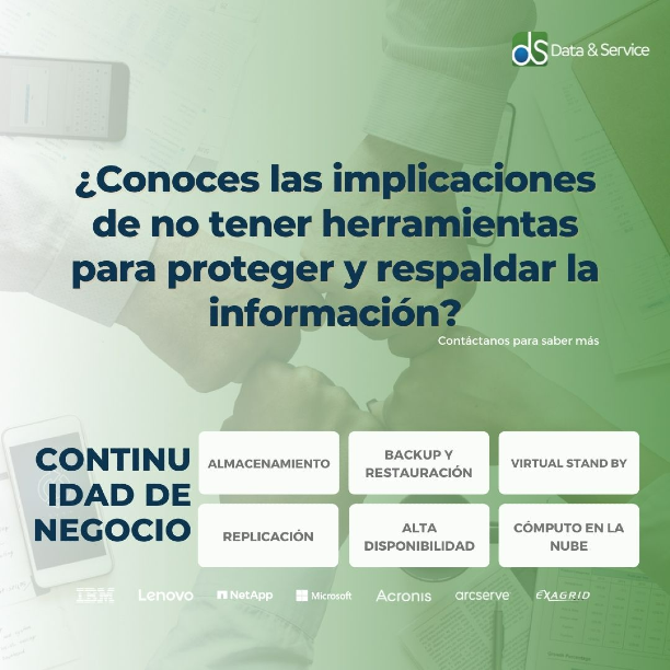 Asegurar la continuidad de la operación de su negocio es una prioridad, las interrupciones de los servicios de una organización generan sensibles pérdidas económicas. Volbox es una novedosa alternativa tecnológica que ofrece soluciones de alta velocidad para apalancar su estrategia de continuidad de negocio, basad - Almacenamiento - Virtual Stand by - Replicación - Alta disponibilidad - Cómputo en la nube Trabajamos con soluciones implementadas en esquemas de nube híbrida, pública o privada.