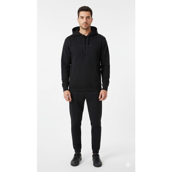 Hoodie en negro, elaborado en algodón perchado de tacto suave y cálido, ideal para el día a día. Cuenta con bolsillos delanteros tipo canguro para mayor comodidad y funcionalidad. Su estampado en alta densidad ofrece un acabado moderno, resistente y de gran definición. Diseño versátil que combina estilo y confort en cualquier ocasión.