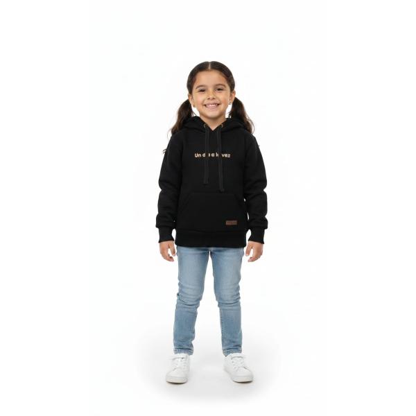 Buzo con capota infantil negro, diseñado para brindar comodidad, abrigo y libertad de movimiento en el día a día. Confeccionado en materiales suaves y agradables al tacto, es ideal para mantener a los más pequeños cómodos y protegidos. Su diseño práctico y versátil lo hace perfecto para cualquier ocasión, combinando estilo y funcionalidad.