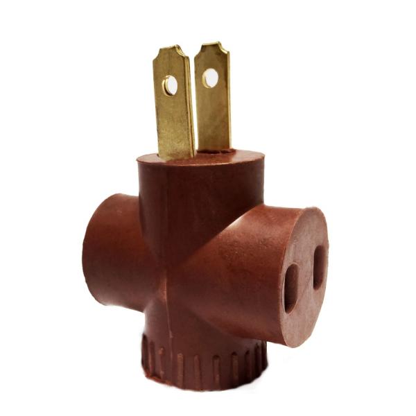 Toma aérea T en caucho para uso doméstico en equipos eléctricos de consumo medio de corriente monofásica. Amperaje: 15 Amperios