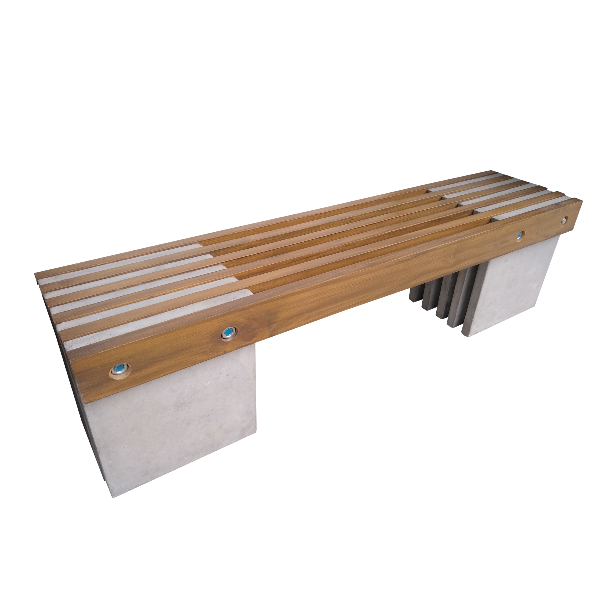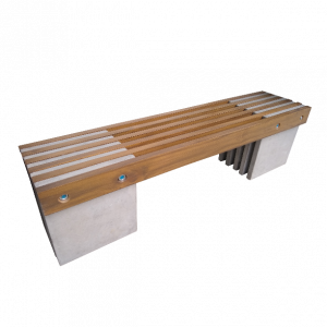 Banca en concreto con base en hierro. Diseño elegante y minimalista, ideal para espacios exteriores de uso público, con altos niveles de calidad por su resistencia a la intemperie y materiales reforzados.