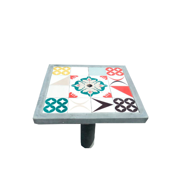 Mesa en concreto gris con incrustaciones decorativas con cerámica, de acuerdo al requerimiento de cada cliente, con alto nivel de funcionalidad, resistencia, elegancia y personalización. La cerámica se cotiza por separado.