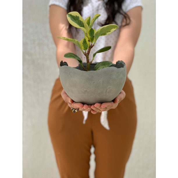 Matera de Concreto, elaborada de forma artesanal, decoración de interiores, sala, habitaciones, hogar y locales comerciales. Diámetro: 17cm - 20cm Alto: 10cm - 12cm Material: Concreto Color: Gris Crudo