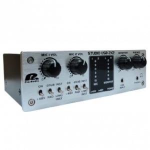 Interfaz de audio Studio USB 2×2 Pa Pro Audio 24bits 2Mic Canales de entrada Mono (MIC / LINE): 2 Estéreo (LINE): 1 PLAYBACK USB: 1 Canales de salida MAIN L / R: 1 AUDIFONOS: 1 Bus Estéreo 1 CH 1/2 MIC / LINE GANANCIA, -14- + 40 dB PAD, 20 dB +48V, LED de Phantom Power Interruptor de IMPEDANCIA Medidor LED de 6 puntos AUDIO USB Entrada estéreo / Salida estéreo Compatible con USB Audio Class 2.0 Frecuencia de muestreo: Máx. 96 KHz Profundidad de bits: 24 bits Conector tipo B