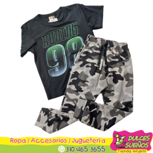 Para niños de 3 añitos este hermoso conjunto de Camiseta y pantalón Camuflado