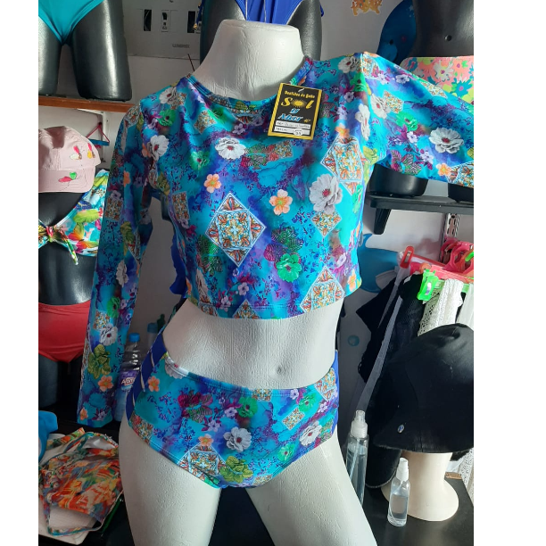 Vestido de Baño Combinado AZUL FLORES decorado Sol y Mar 40grados