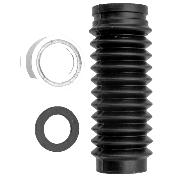 FUELLE TELESCÓPICO KIT AX-100, AX-115, NEGRO, EN CAUCHO CON ARANDELA METÁLICA, ARANDELA EN CAUCHO Y ABRAZADERAS