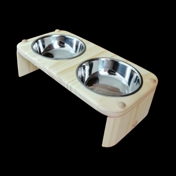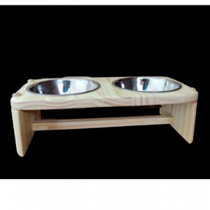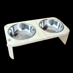 Fino y elegante comedero para tu michi, fabricado en pino tramontina de 2 cm de espesor con bandejas inoxidables de 14 cm de diámetro. Puedes elegir entre sencillo, doble o doble con espacio para la hierba gatuna. Contactanos