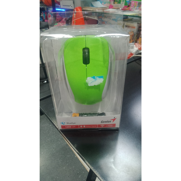 Mouse marca Genius inalámbrico en color negro, verde, blanco