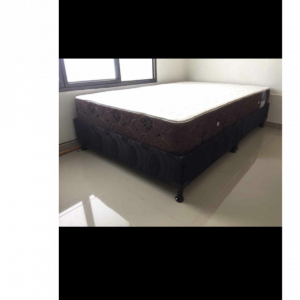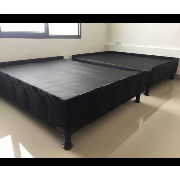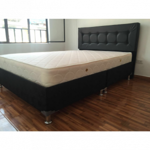 Base cama en dos módulos en tela jacard con colchón ortopédico resortado de 23 cm de grueso garantizado por 8 años en hundimiento y deformidad