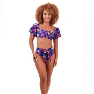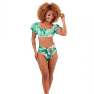 Crop top de manga con tanga alta para amarrar en el centro