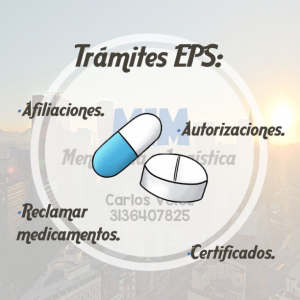 Se reclaman y se entregan medicamentos a domicilio en la puerta de su casa, también se reclaman y renuevan formulas de medicamentos, se solicitan citas, se realizan autorizaciones en EPS el servicio tiene un costo que va desde 15000 hasta 18000 dependiendo de la ubicación
