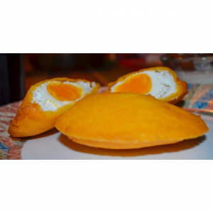 Rica arpa asada con salchichón frito