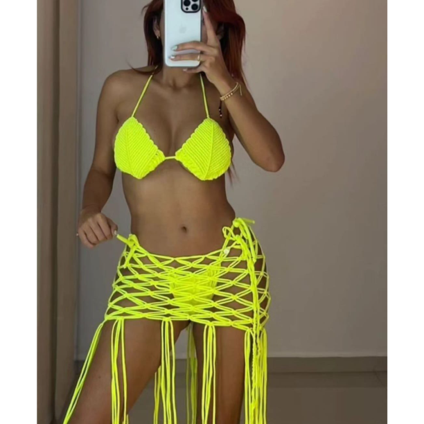 Al lucir uno de nuestros vestidos de baño tejidos a mano, y en este caso este espectacular SET, estarás destacando tu estilo único y sofisticado, convirtiéndote en el centro de todas las miradas en la playa o la piscina. elaborado 100% a mano