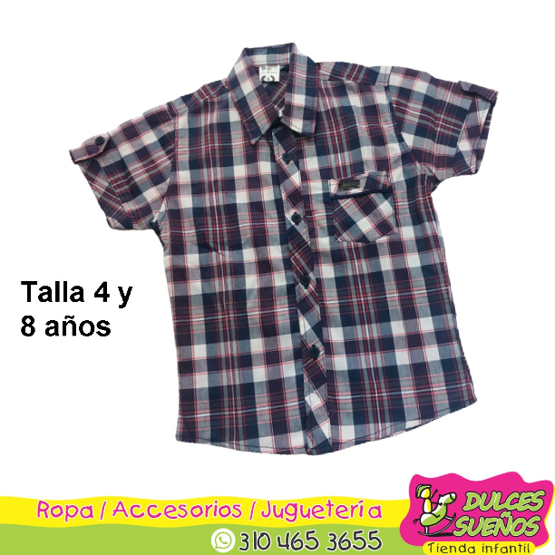 Camisa a cuadros, manga corta en tela muy fresca, úsala con jean o pantalón de tela, y tu hijo se verá espectacular, Disponible en talla 4 y 8